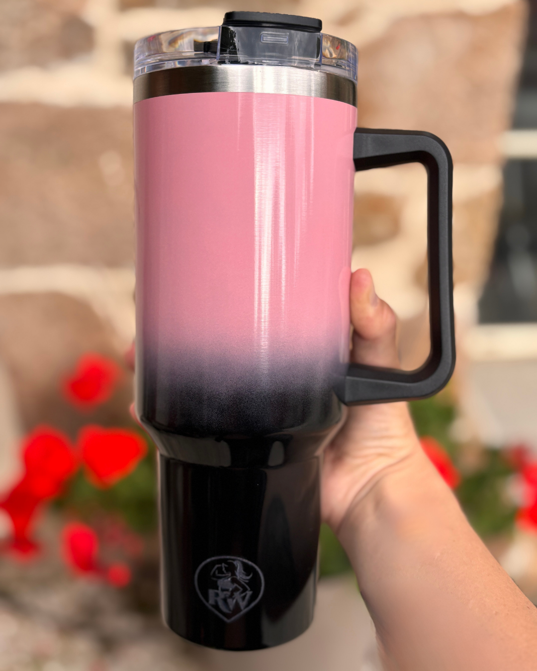 Gourde isotherme 1,2 L avec paille – Noire et rose