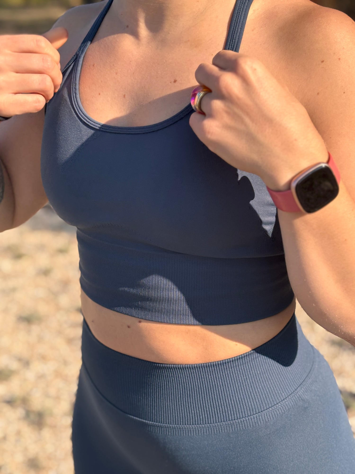 Son tissu respirant et anti-humidité t’aide à rester concentrée, fraîche et alignée, séance après séance.